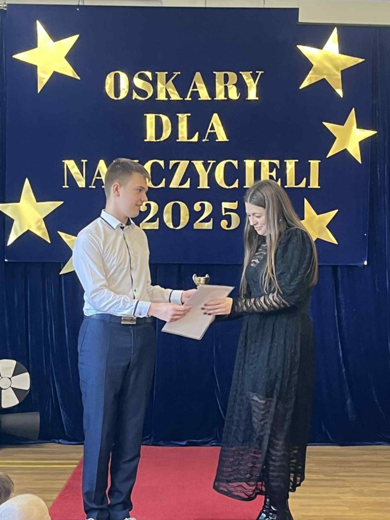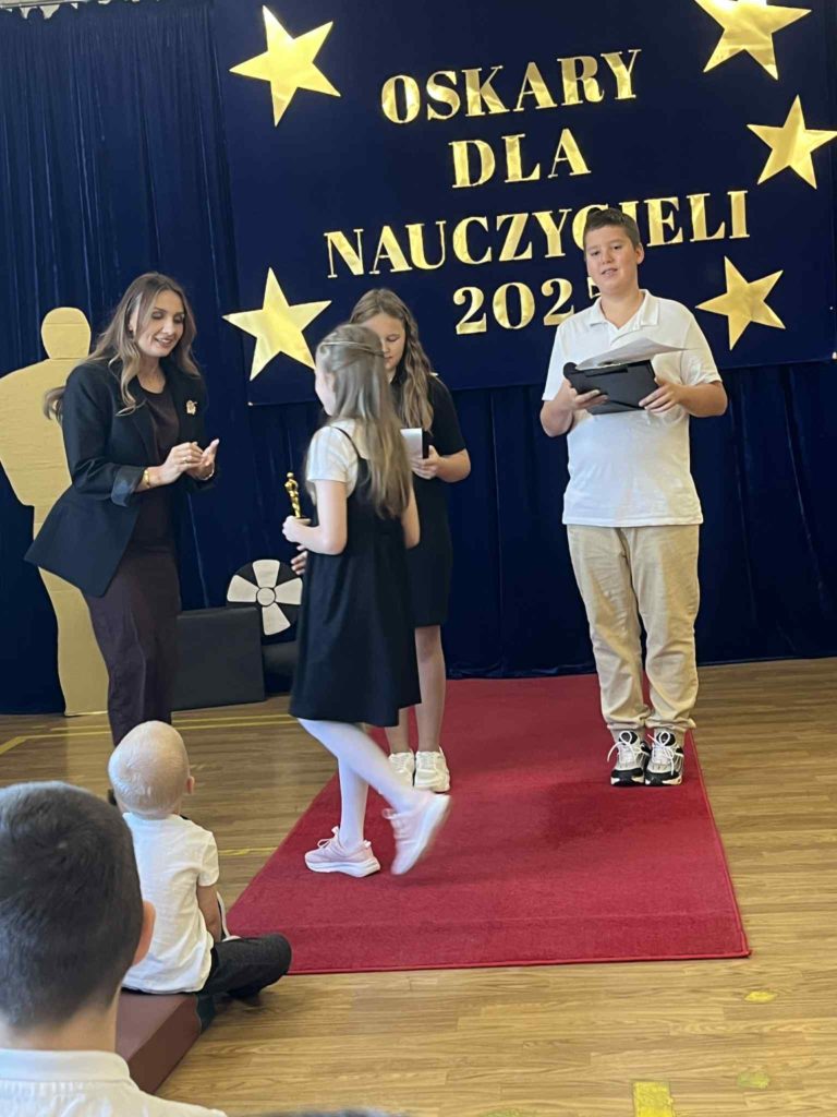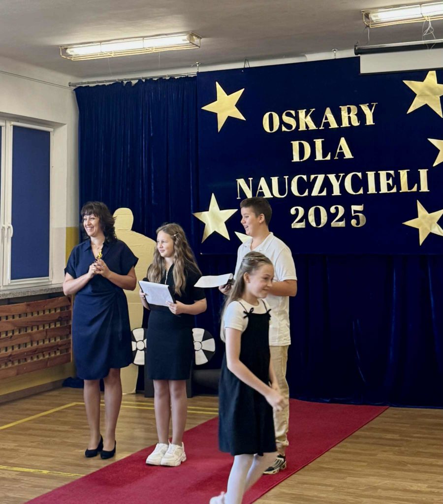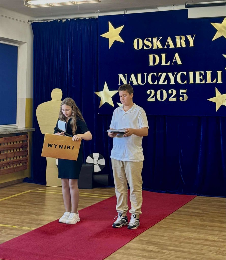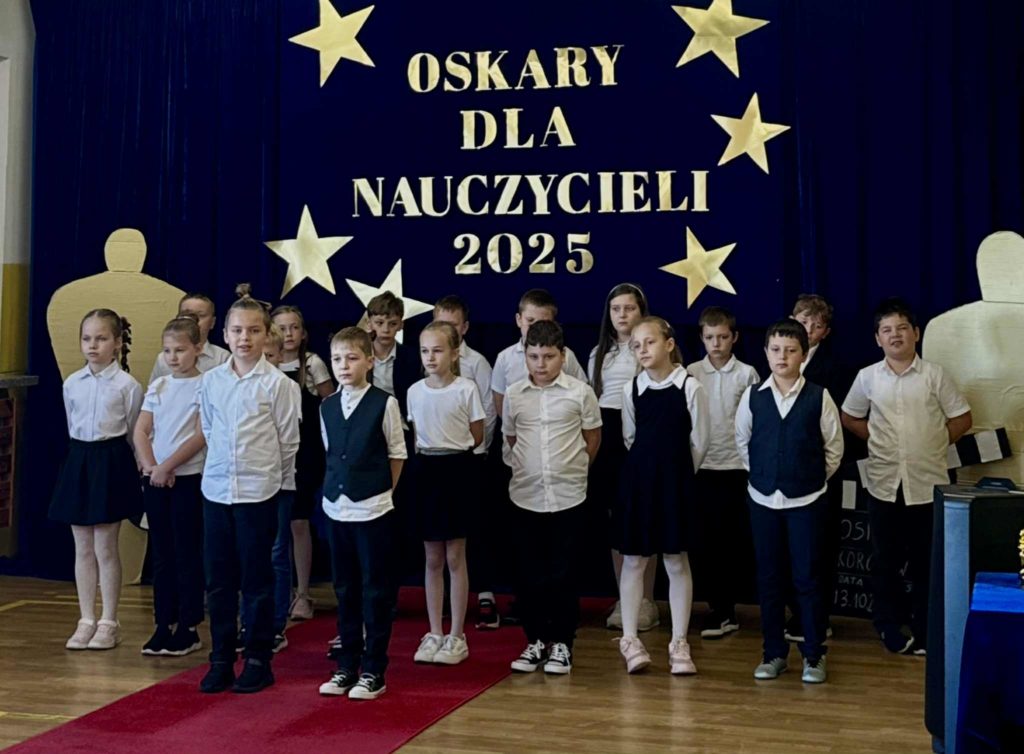 Nasza szkoła zamieniła się w prawdziwą salę kinową! Z okazji Dnia Edukacji Narodowej uczniowie przygotowali wyjątkową Galę Nauczycielskich Oskarów, podczas której z humorem i wdzięcznością wręczali statuetki swoim nauczycielom. Były wzruszenia, śmiech, brawa i serdeczne życzenia – za codzienny trud, cierpliwość i serce wkładane w nauczanie. Dziękujemy wszystkim, którzy sprawili, że ten dzień był tak wyjątkowy!