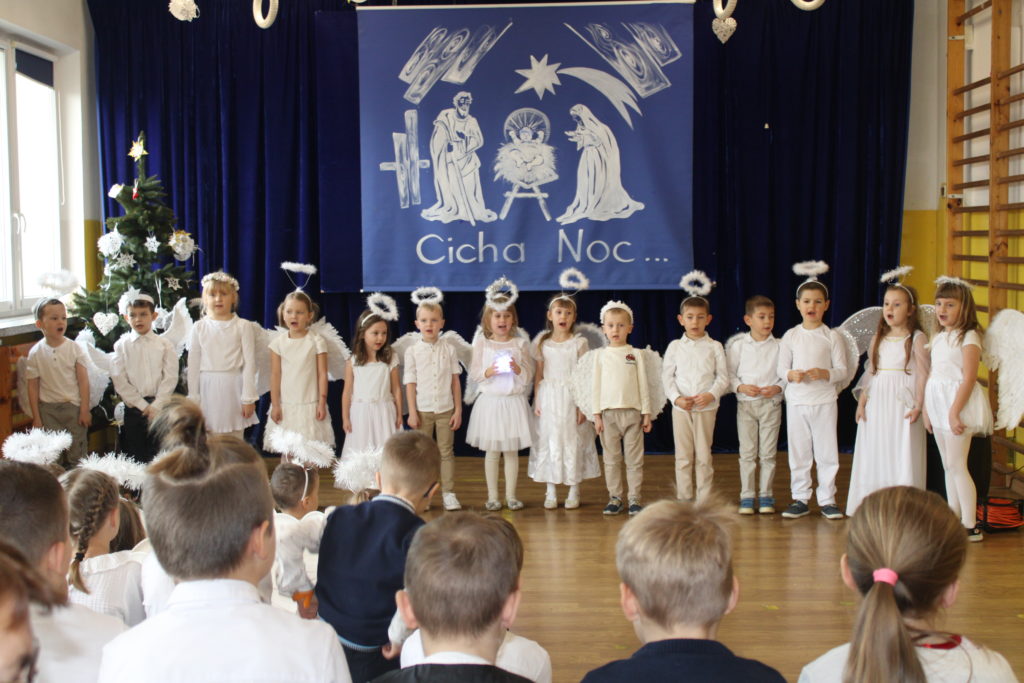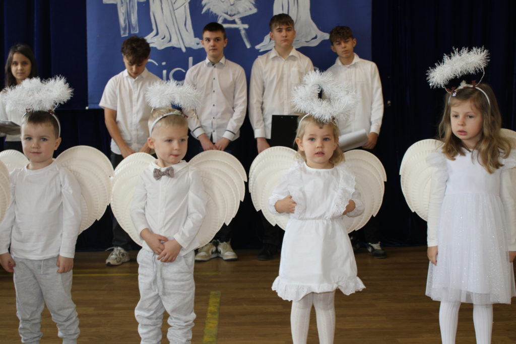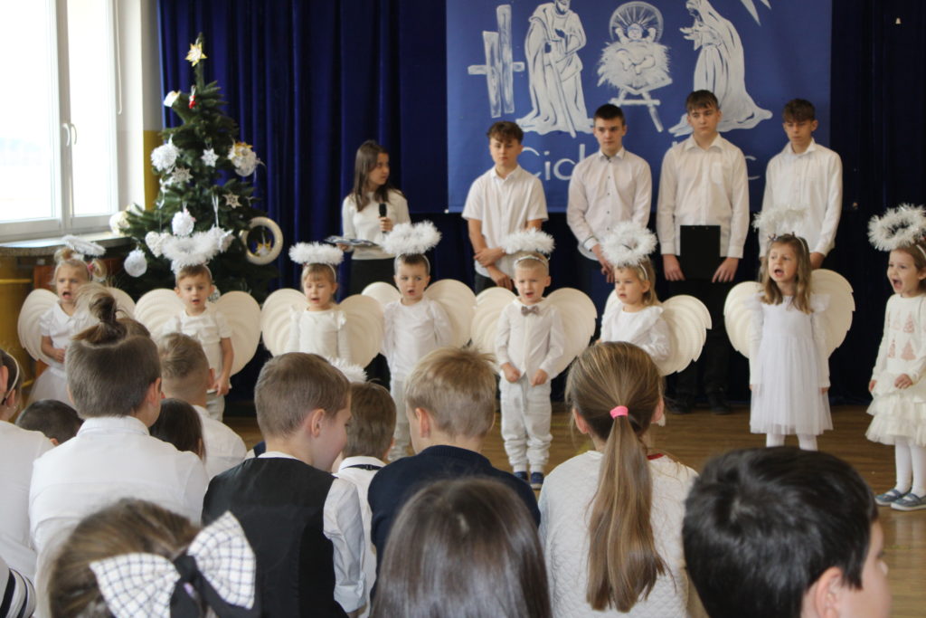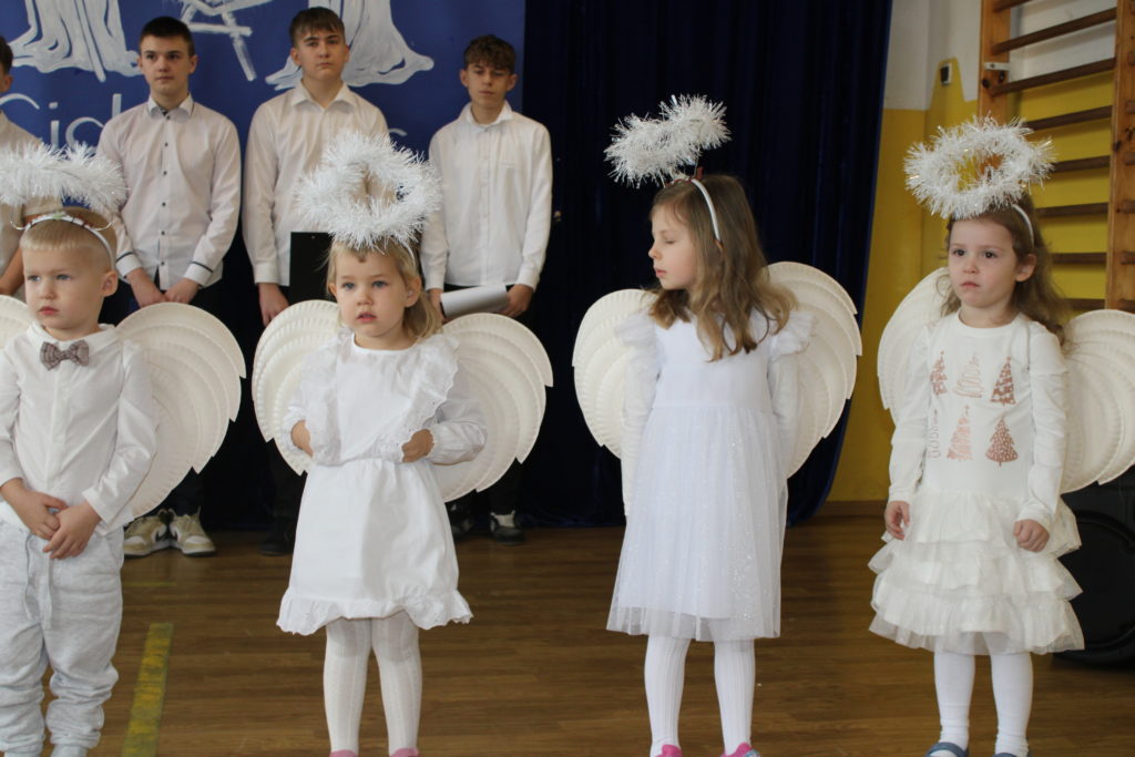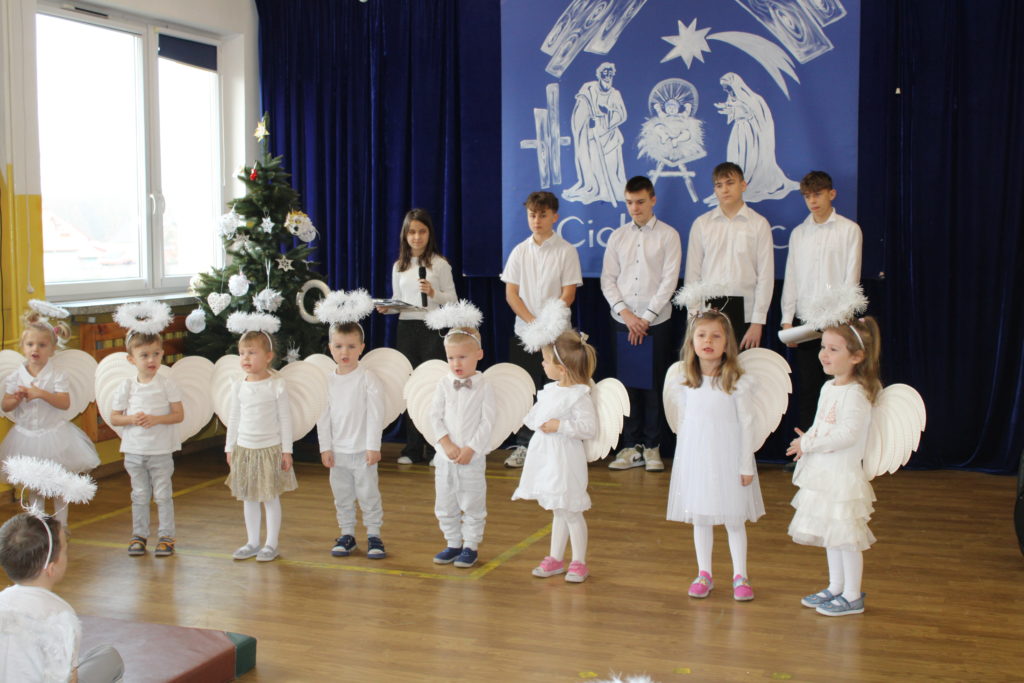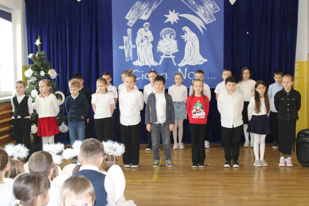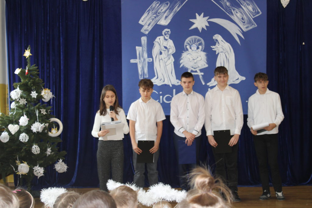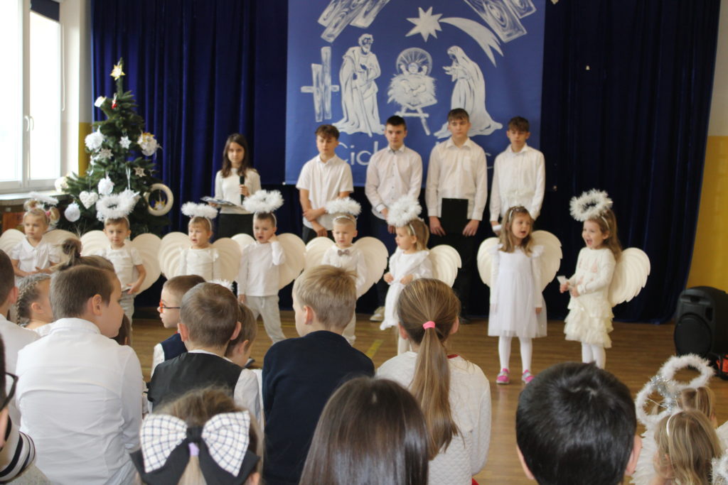 W dniu dzisiejszym w naszej szkole odbyły się Jasełka Bożonarodzeniowe. Uroczystość została uświetniona pięknym śpiewem kolęd w wykonaniu społeczności szkolnej, co wprowadziło wszystkich w wyjątkowy, bożonarodzeniowy nastrój. Szczególnym punktem programu było odczytanie przez uczniów klasy VIII historii związanej z tradycją Świąt Bożego Narodzenia, przybliżającej ich znaczenie oraz symbolikę. Po zakończeniu części wspólnej uczniowie udali się do klas, gdzie w ciepłej i serdecznej atmosferze wspólnie podzielili się opłatkiem, składając sobie nawzajem świąteczne życzenia.