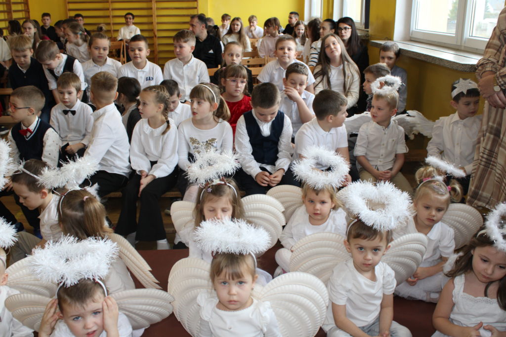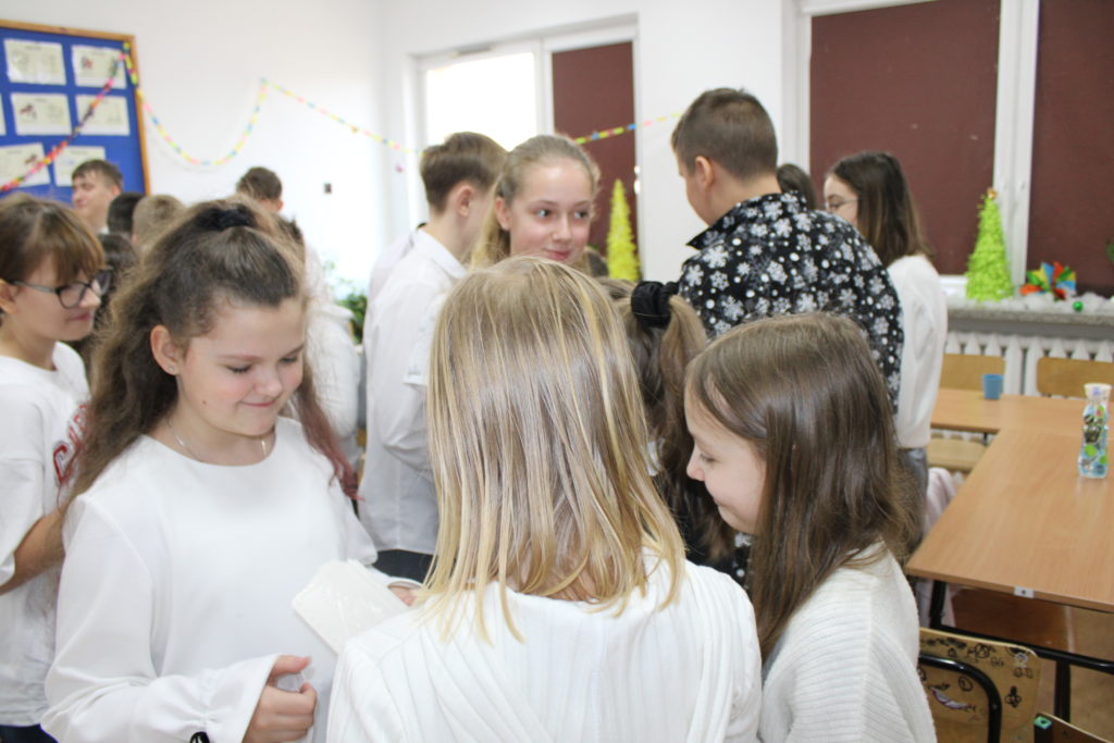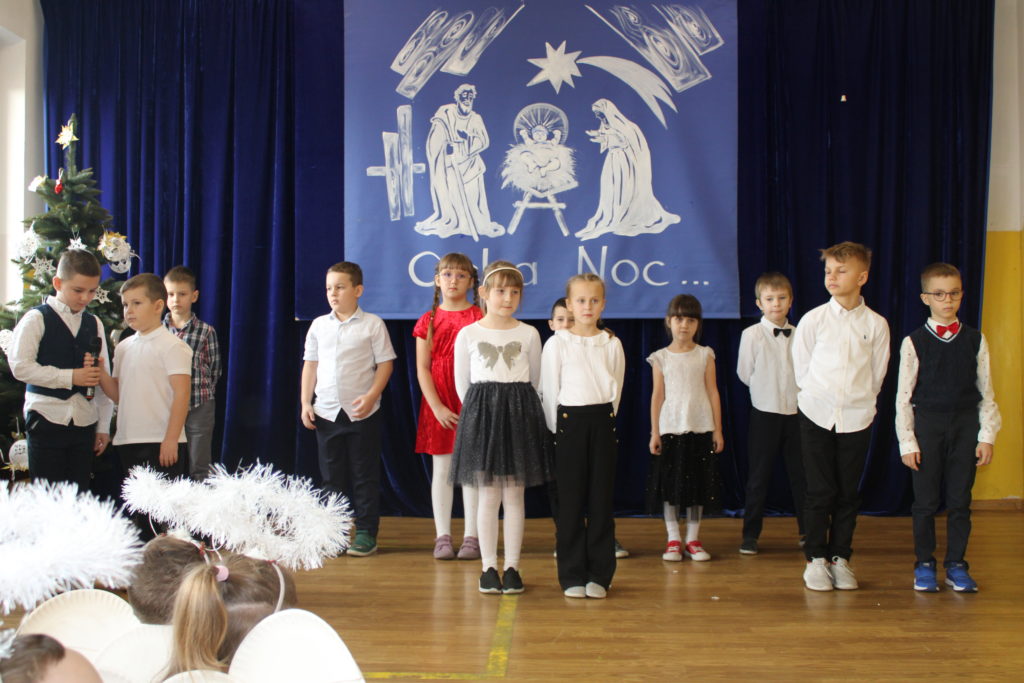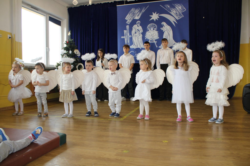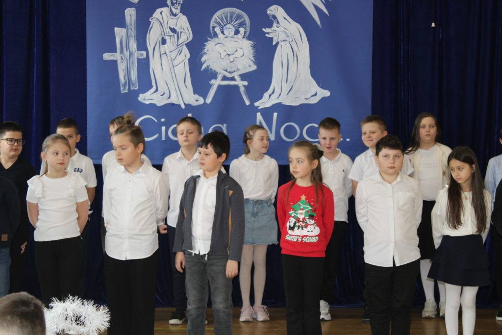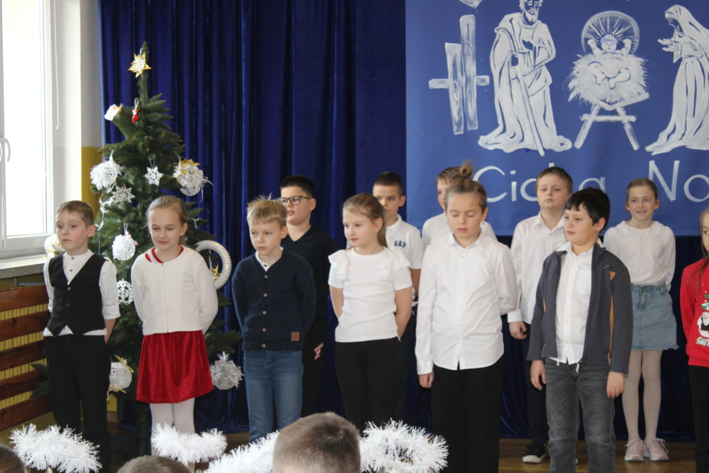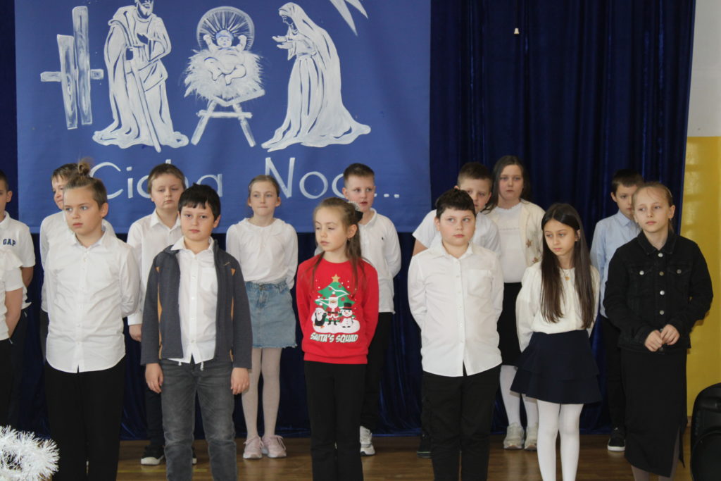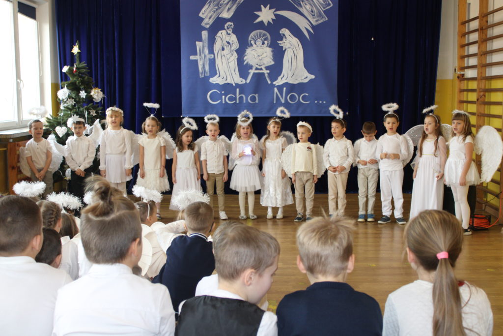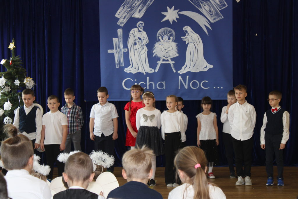 W dniu dzisiejszym w naszej szkole odbyły się Jasełka Bożonarodzeniowe. Uroczystość została uświetniona pięknym śpiewem kolęd w wykonaniu społeczności szkolnej, co wprowadziło wszystkich w wyjątkowy, bożonarodzeniowy nastrój. Szczególnym punktem programu było odczytanie przez uczniów klasy VIII historii związanej z tradycją Świąt Bożego Narodzenia, przybliżającej ich znaczenie oraz symbolikę. Po zakończeniu części wspólnej uczniowie udali się do klas, gdzie w ciepłej i serdecznej atmosferze wspólnie podzielili się opłatkiem, składając sobie nawzajem świąteczne życzenia.
