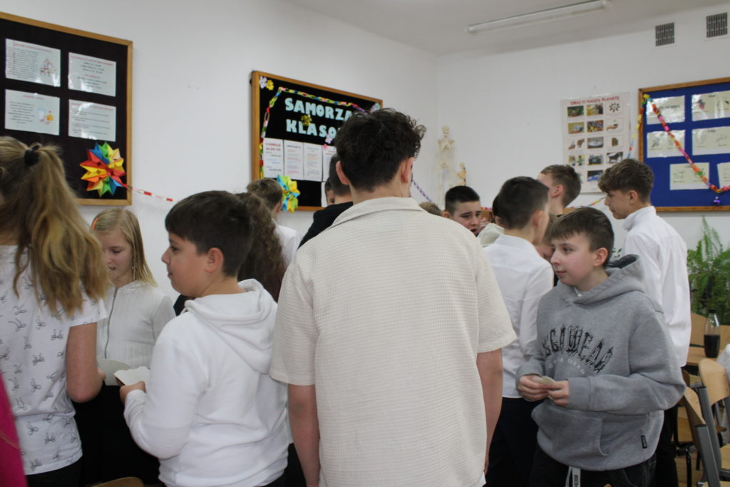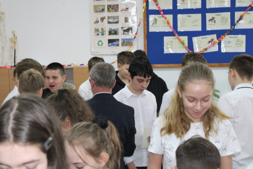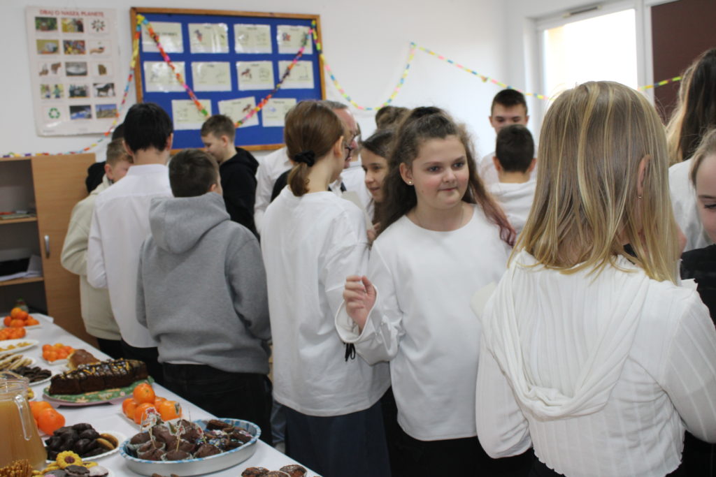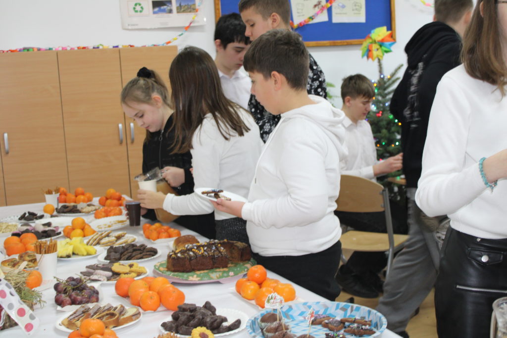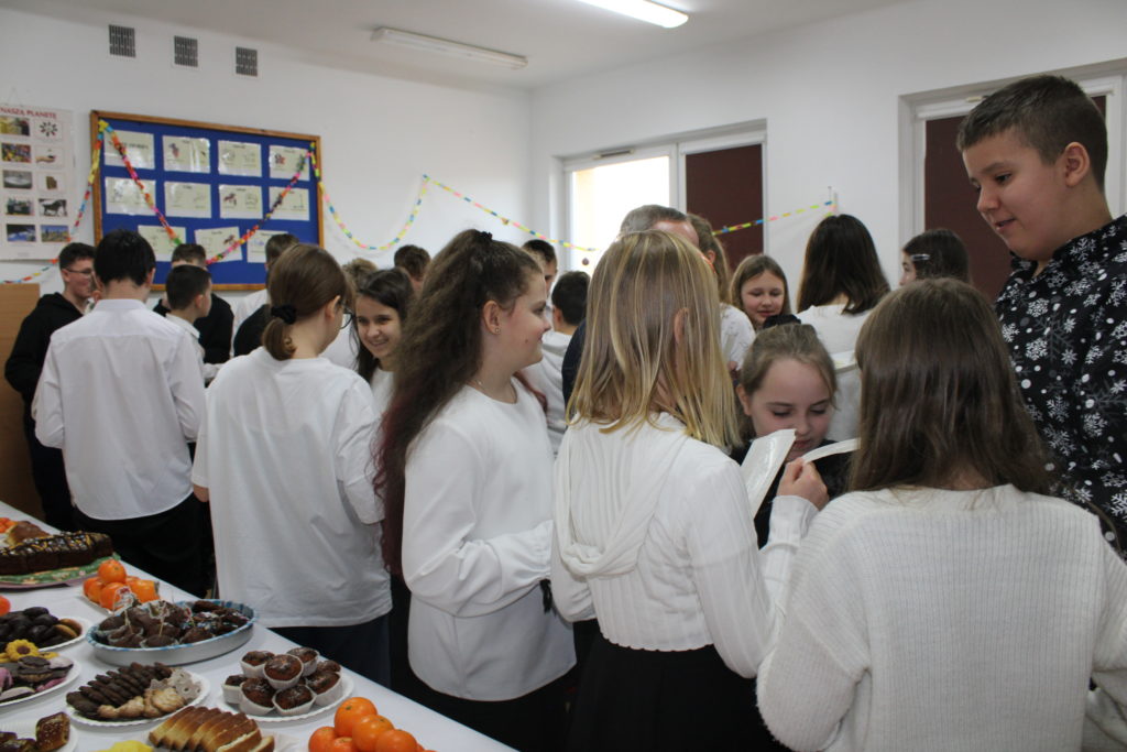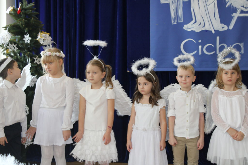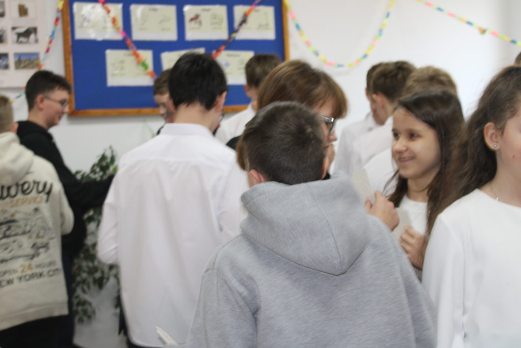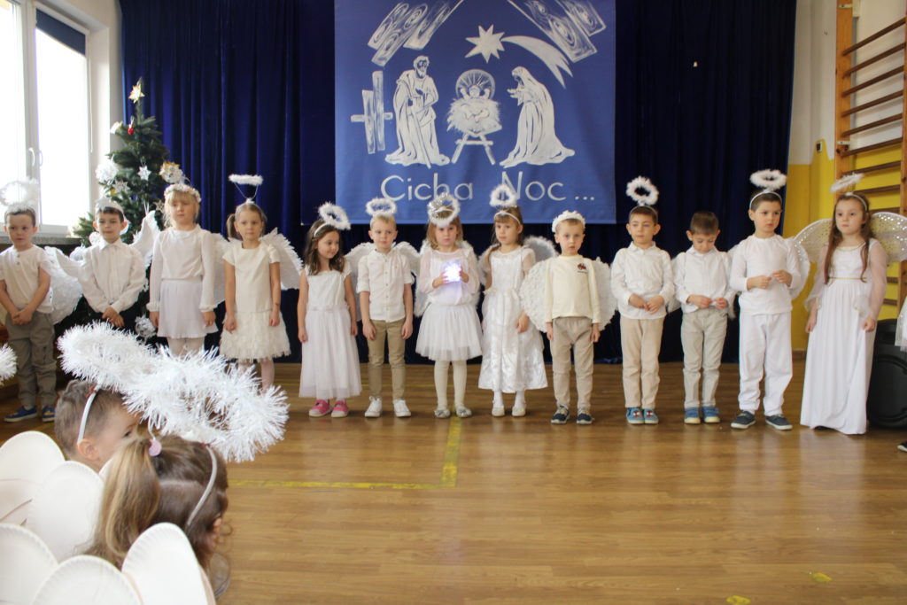 W dniu dzisiejszym w naszej szkole odbyły się Jasełka Bożonarodzeniowe. Uroczystość została uświetniona pięknym śpiewem kolęd w wykonaniu społeczności szkolnej, co wprowadziło wszystkich w wyjątkowy, bożonarodzeniowy nastrój. Szczególnym punktem programu było odczytanie przez uczniów klasy VIII historii związanej z tradycją Świąt Bożego Narodzenia, przybliżającej ich znaczenie oraz symbolikę. Po zakończeniu części wspólnej uczniowie udali się do klas, gdzie w ciepłej i serdecznej atmosferze wspólnie podzielili się opłatkiem, składając sobie nawzajem świąteczne życzenia.