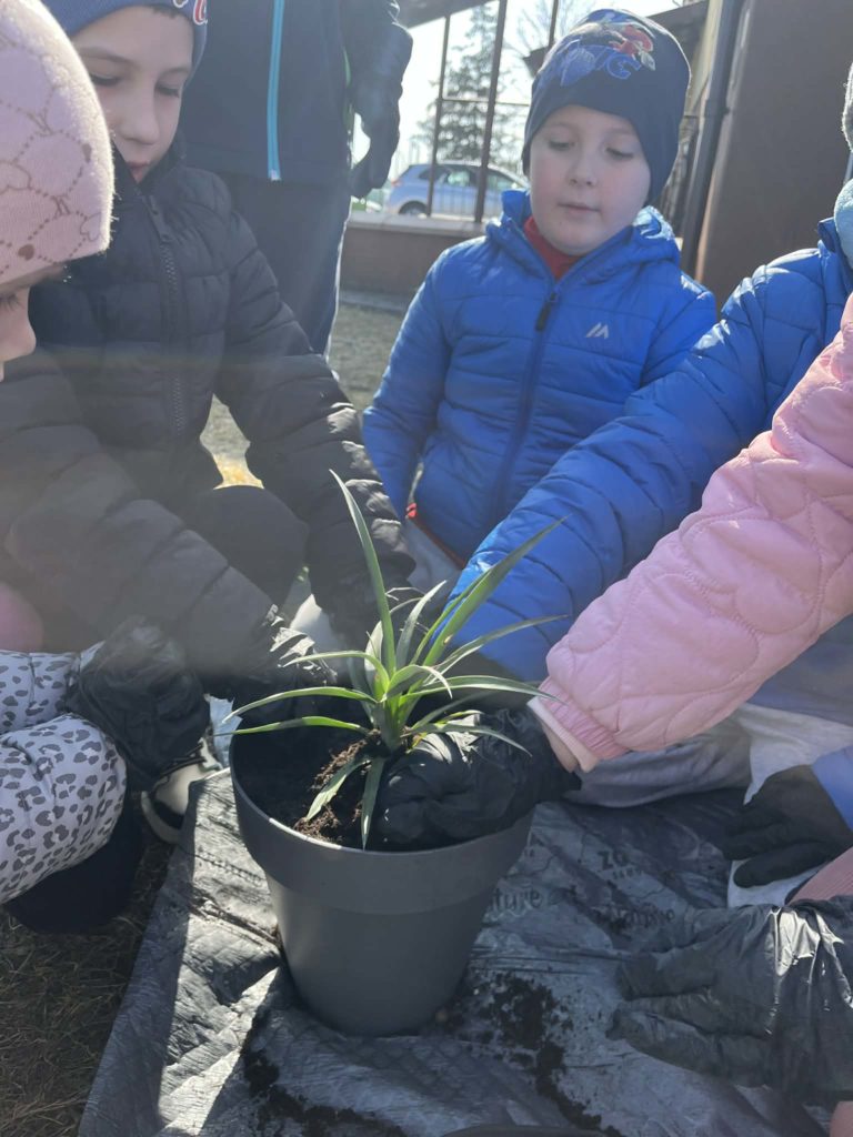 Uczniowie klasy pierwszej już poczuli powiew wiosny! Dziś z wielkim zaangażowaniem założyli swój własny parapetowy ogródek. Mali ogrodnicy posadzili wiosenne kwiaty, cebulkę, z której wkrótce wyrośnie pyszny szczypiorek, a także coś bardziej egzotycznego. Najwięcej emocji wzbudziła jednak uprawa ananasa. Czy uda się wyhodować soczysty owoc prosto z klasowego parapetu? Czas pokaże! Jedno jest pewne – nauka przez działanie sprawia uczniom ogromną radość i już nie mogą doczekać się pierwszych efektów swojej pracy. Trzymamy kciuki za klasowy ogródek i z niecierpliwością czekamy na jego rozwój!