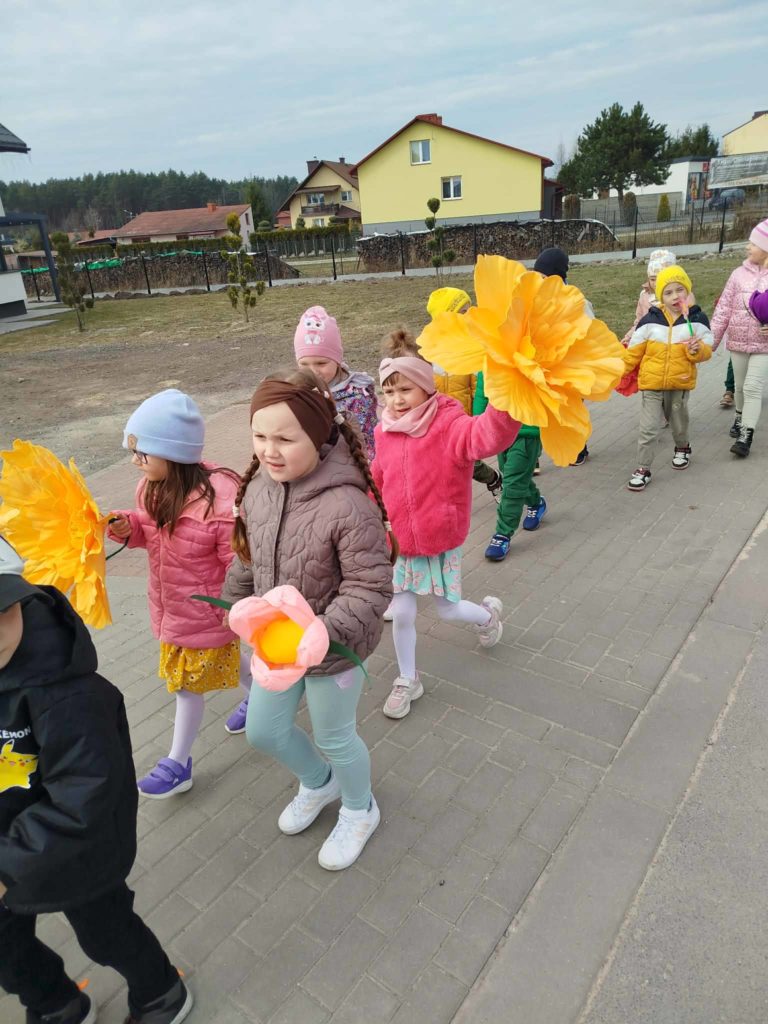 Nasze przedszkolaki z radością powitały długo wyczekiwaną wiosnę! Było kolorowo, wesoło i bardzo kreatywnie – dzieci przygotowały piękne prace plastyczne, śpiewały wiosenne piosenki oraz wzięły udział w barwnym, wiosennym korowodzie.