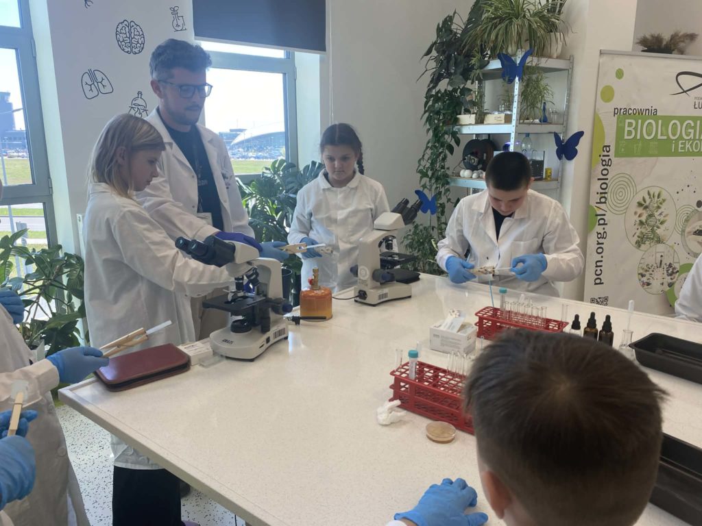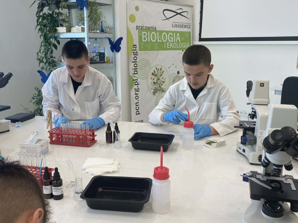 Dodatkowo uczestniczyli w warsztatach edukacyjnych dostosowanych do ich wieku. Klasy 5–6 brały udział w zajęciach z biologii, podczas których zgłębiały tajniki świata przyrody, natomiast uczniowie klas 7–8 uczestniczyli w warsztatach chemicznych, wykonując ciekawe doświadczenia i poznając różne reakcje chemiczne w praktyce.